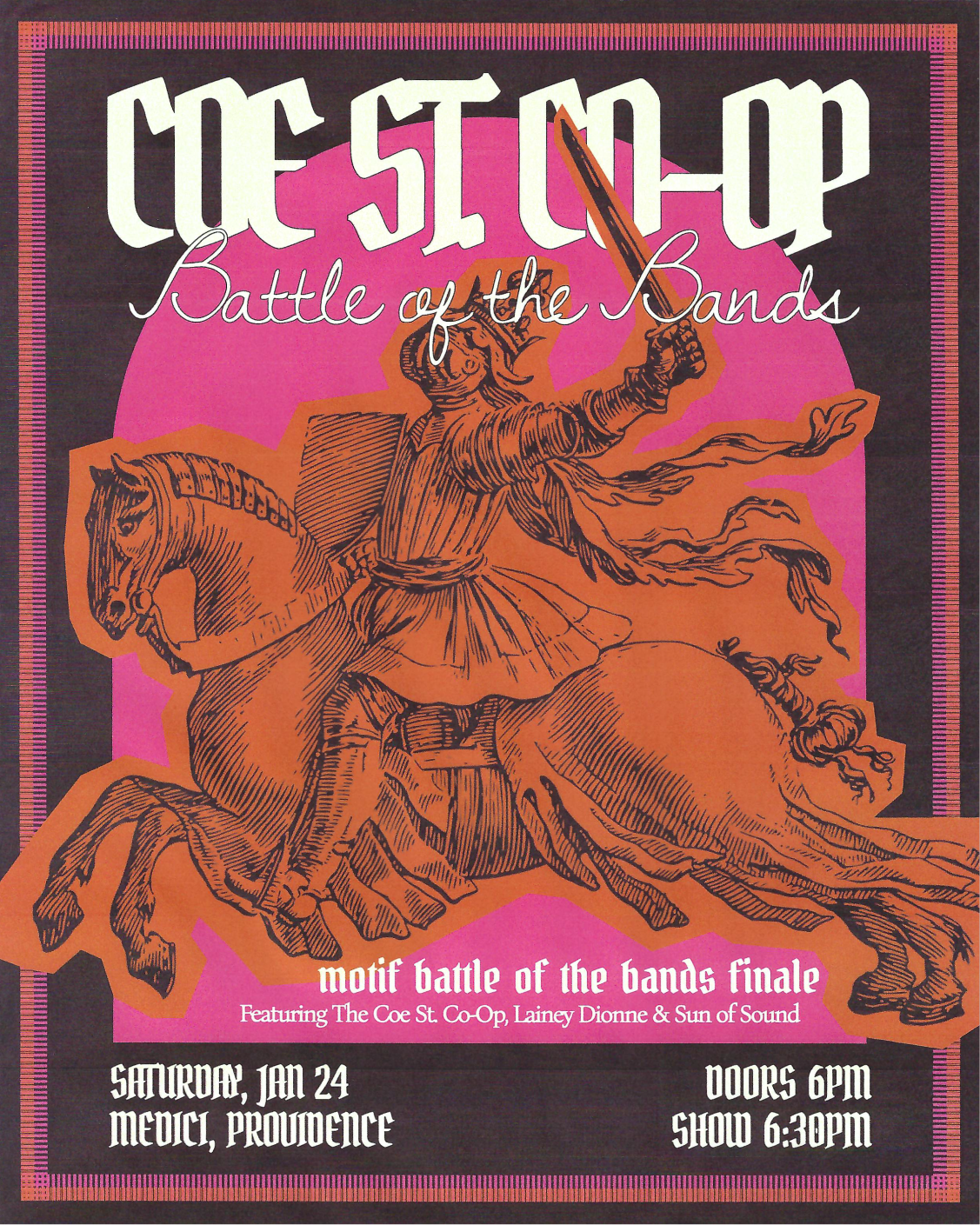 Logo design, poster design, & creative direction Coe St. Co-Op Coe St. Co-Op is a folk rock band based in Providence, RI. Lead creative direction efforts to establish branding for the band. Created logo, posters, and apparel.